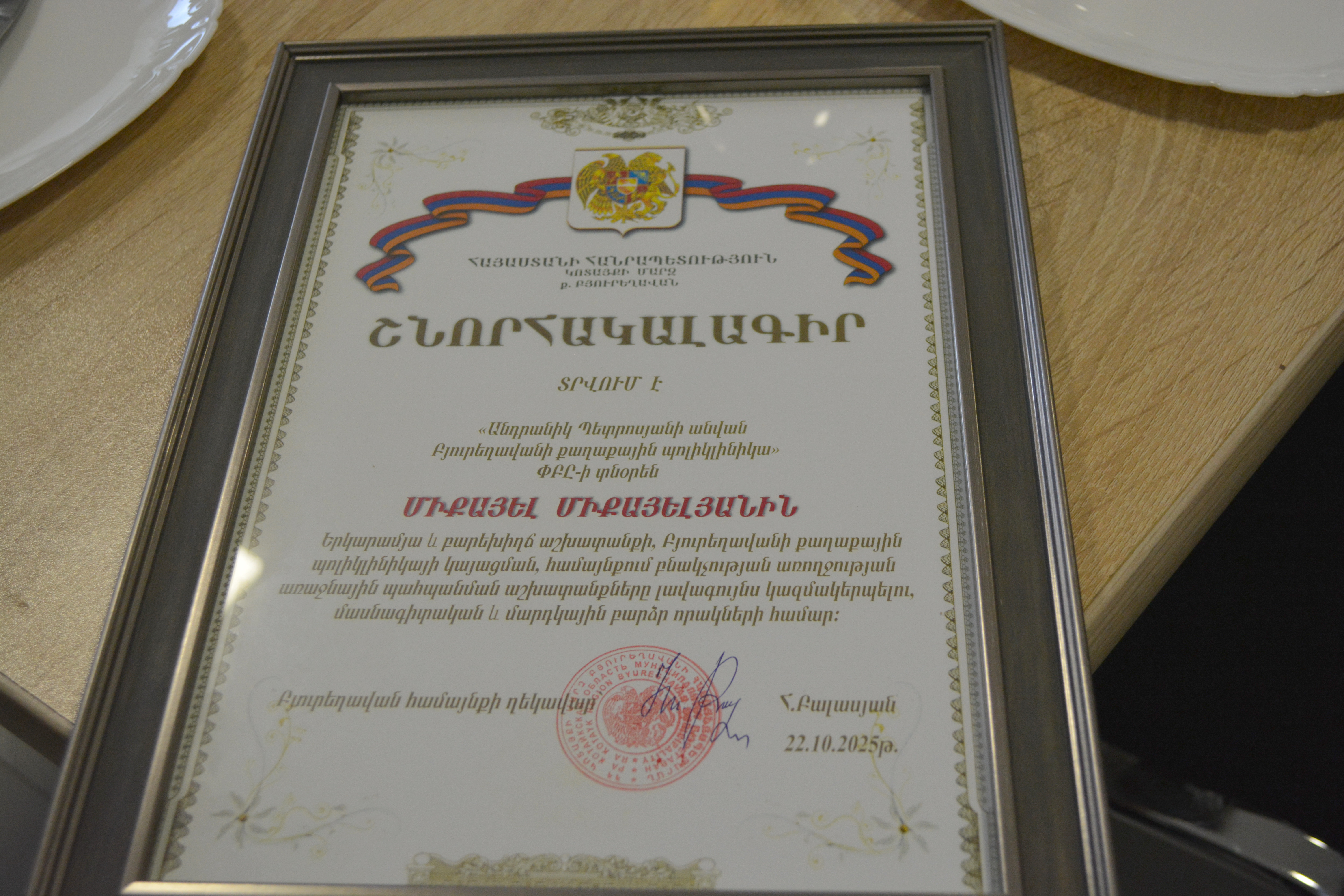 23/10/2025ՇնորհակալագիրԲՅՈՒՐԵՂԱՎԱՆԻ ՀԱՄԱՅՆՔԱՊԵՏԱՐԱՆ